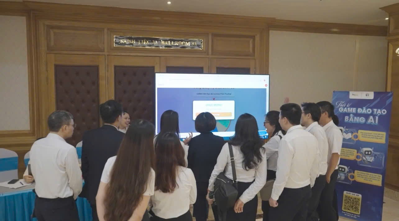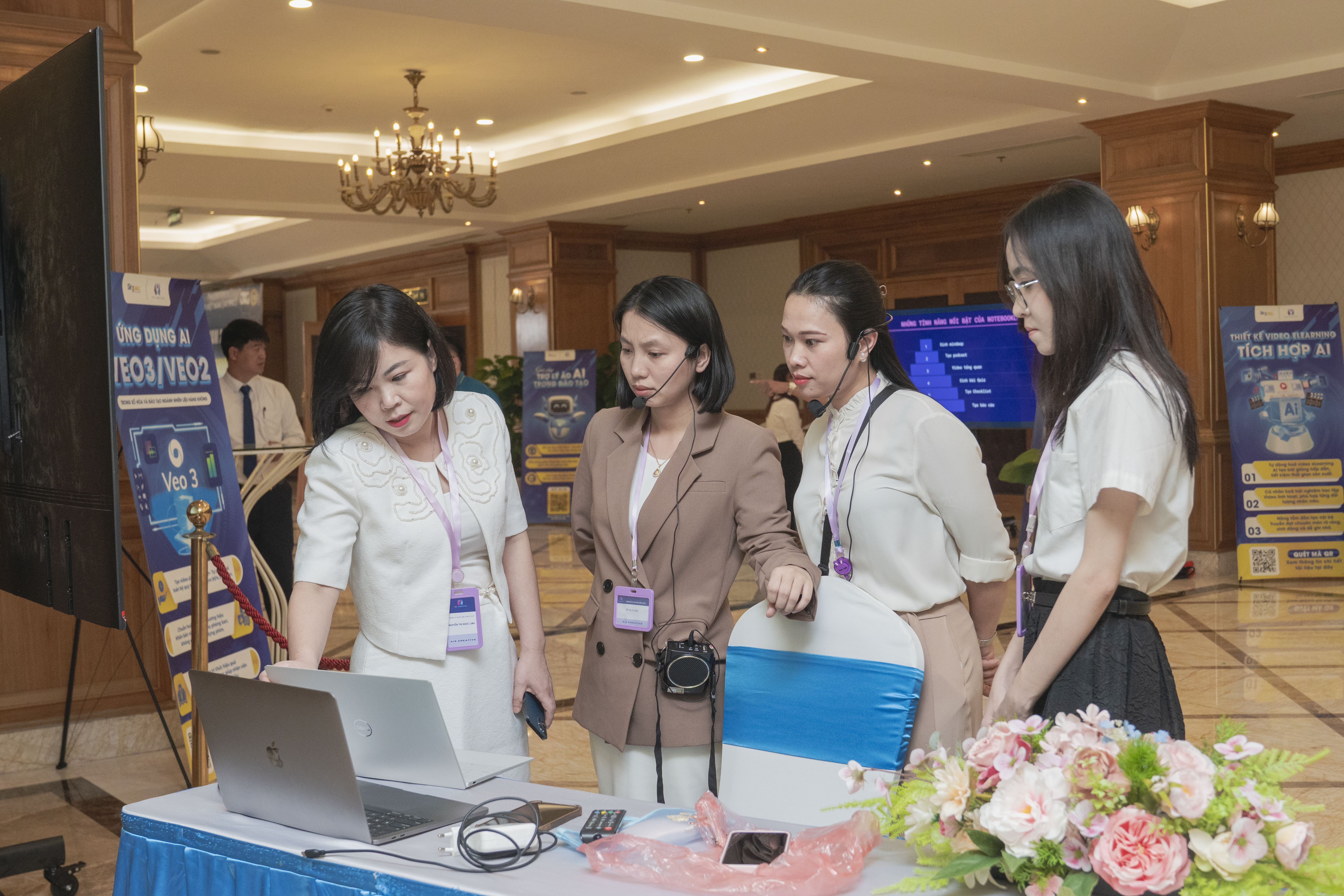 Và đặc biệt, khu vực trải nghiệm E-learning AI, video tự động VEO 3 và mô phỏng robot đào tạo đã tạo được sự phấn khích rõ rệt. Chỉ vài thao tác đơn giản, người xem thấy ngay một bài học hoàn chỉnh, hình thành trước mắt như phép màu.