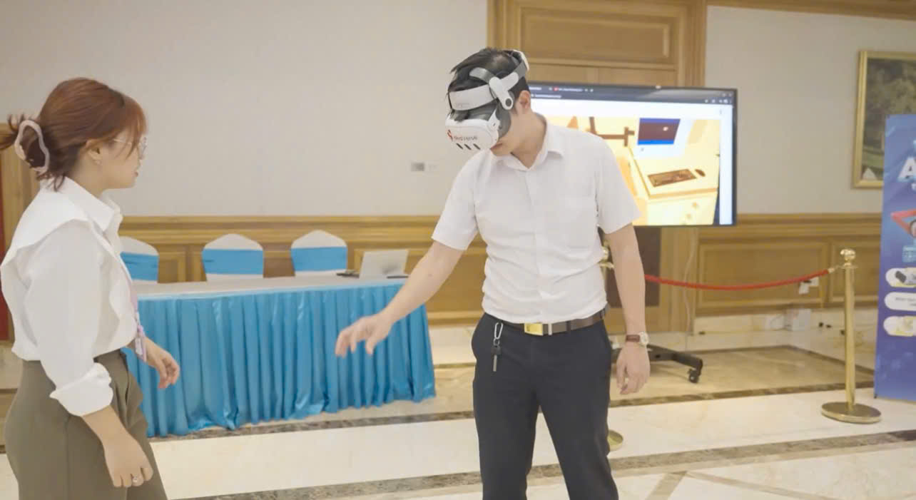 AR–VR cho huấn luyện an toàn hàng không – một trong những khu thu hút nhất. Nhiều đại biểu thử xong đã quay lại thêm lần nữa vì… “quá thật và quá dễ hiểu.”